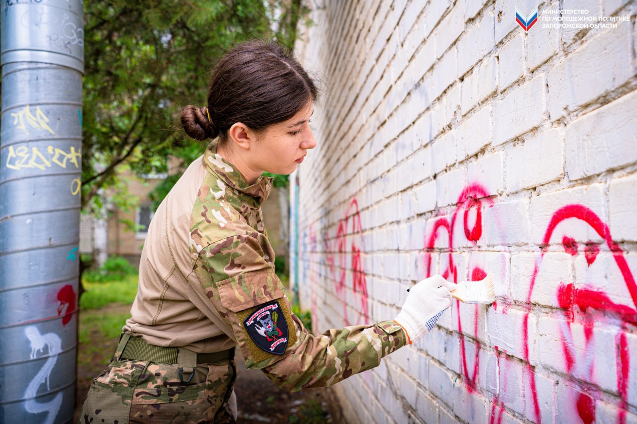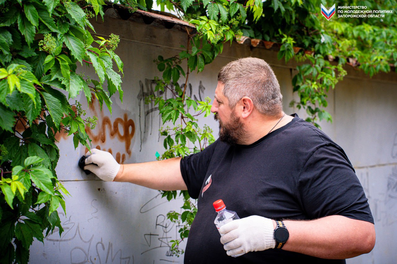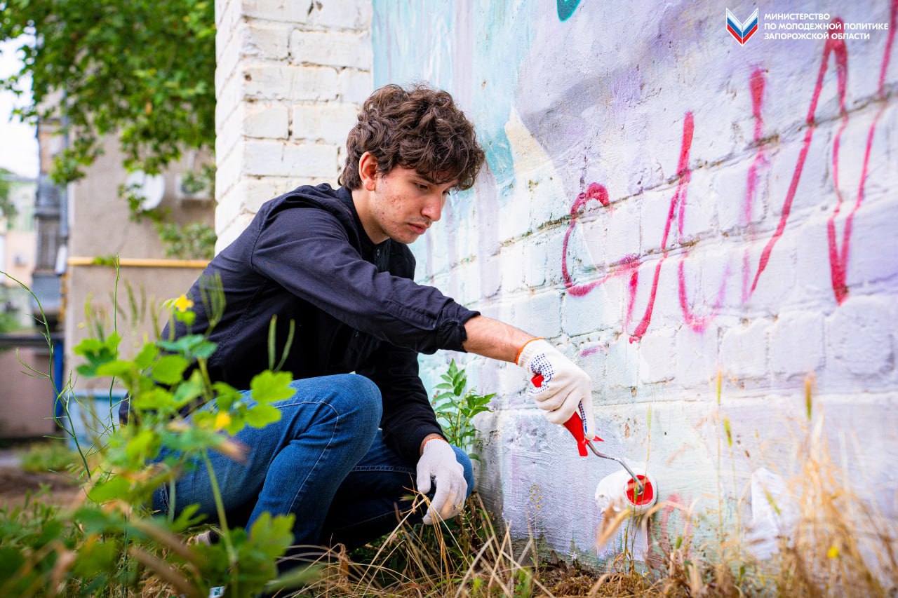 Говорим «нет» наркотикам не на словах, а делом: Мелитопольские активисты убирают опасные послания с фасадов зданий