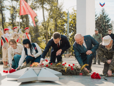 В ходе рабочего визита в Запорожскую область Владислав Головин — начальник Главного штаба ВВПОД «Юнармия» и Виктор Кауров — первый заместитель начальника главного штаба ВВПОД «Юнармия» совместно с активистами «Юнармия» и «Движение Первых» приняли участие в памятном возложении цветов у Вечного огня в честь 80-летия Победы в Великой Отечественной войне.