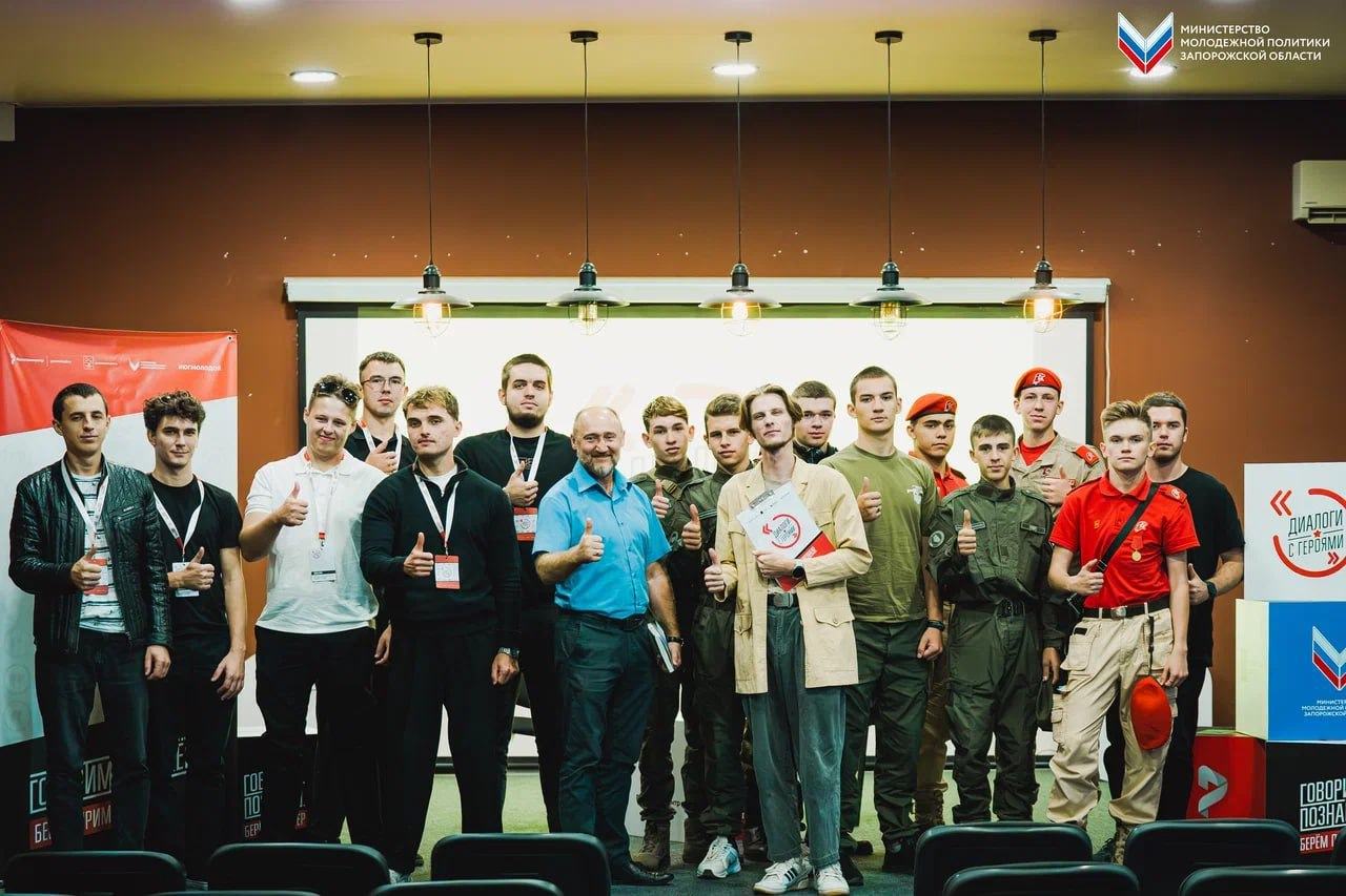 В Мелитополе состоялся открытый диалог с ветераном специальной военной операции, в рамках акции «СВОим примером», организованной Министерством молодёжной политики. Мероприятие приурочено к празднованию Дня воссоединения Донецкой Народной Республики, Луганской Народной Республики, Запорожской области и Херсонской области с Российской Федерацией.