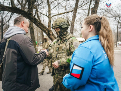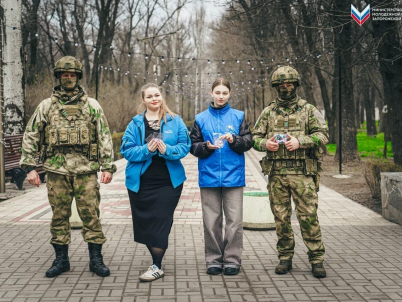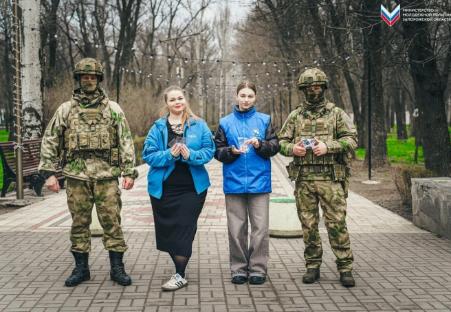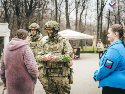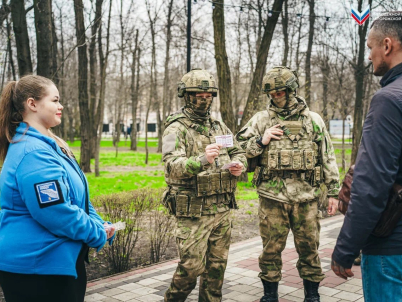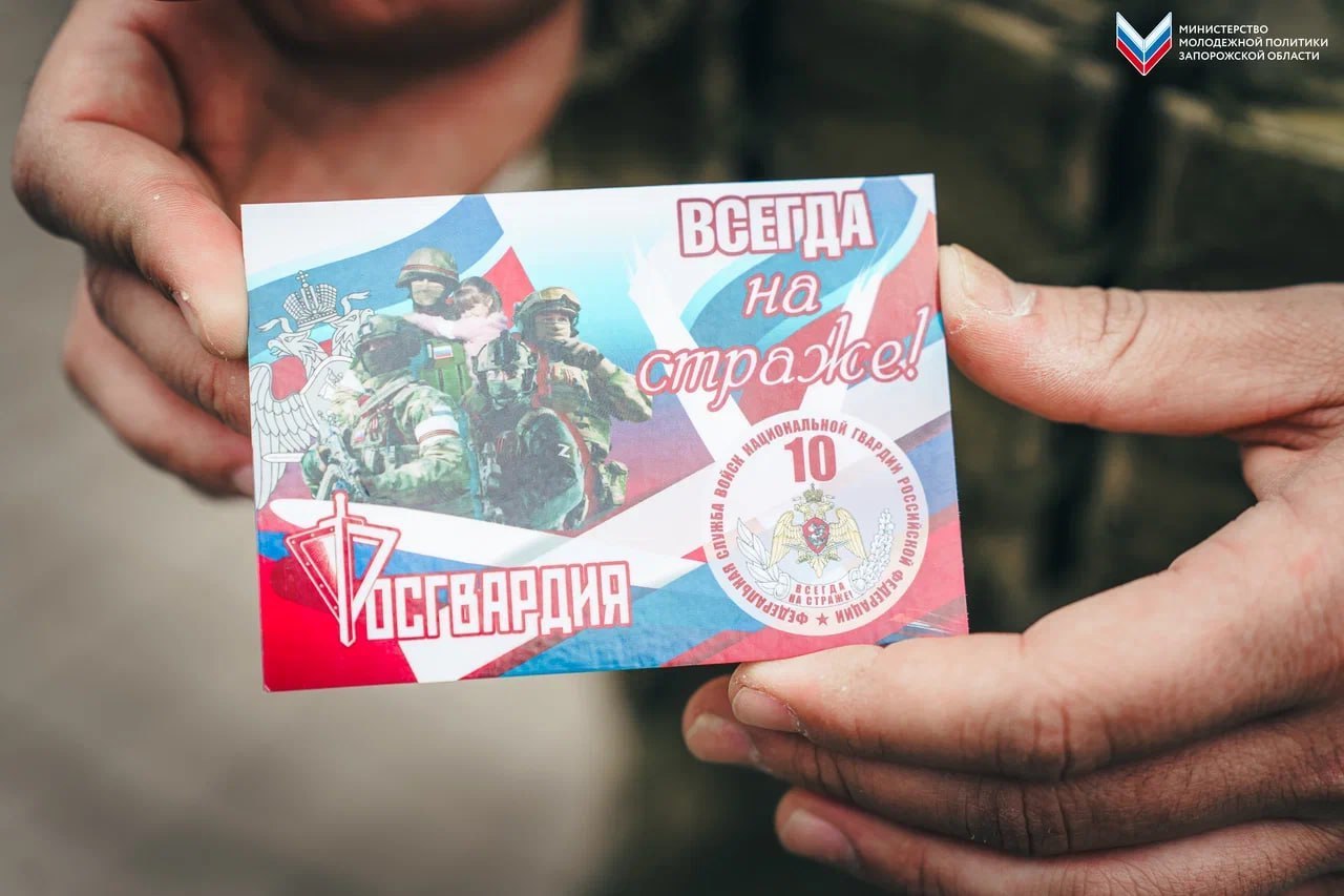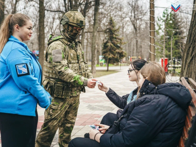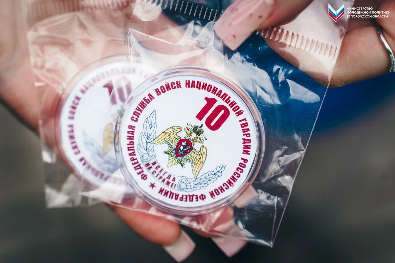 Активисты раздали жителям Мелитополя значки ко Дню образования Федеральной службы войск национальной гвардии
