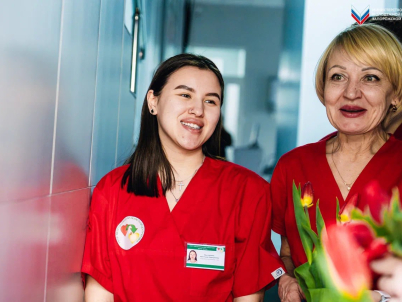 Добровольцы ВСКС вручили тюльпаны медицинским работникам