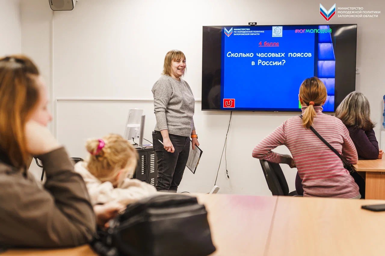 Родители и их дети отвечали на вопросы о географии, знаменитых городах, богатой культуре и народах, проживающих в России. Участники увлечённо рассказывали интересные факты о своих путешествиях и участвовали в творческих заданиях.
