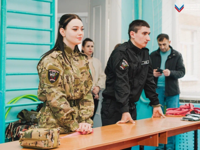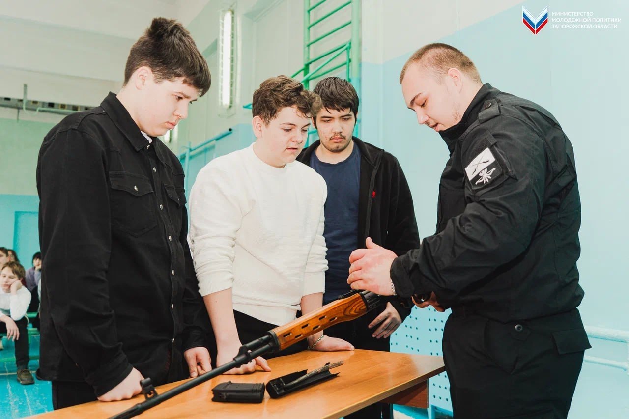 Бойцы «Добровольческой молодёжной дружины» провели занятие в Бердянской школе №10 в рамках регионального проекта «Уроки мужества, тактической медицины и гражданской обороны». Активисты рассказали ребятам об оказании первой медицинской помощи и способах противодействия терроризму и экстремизму.