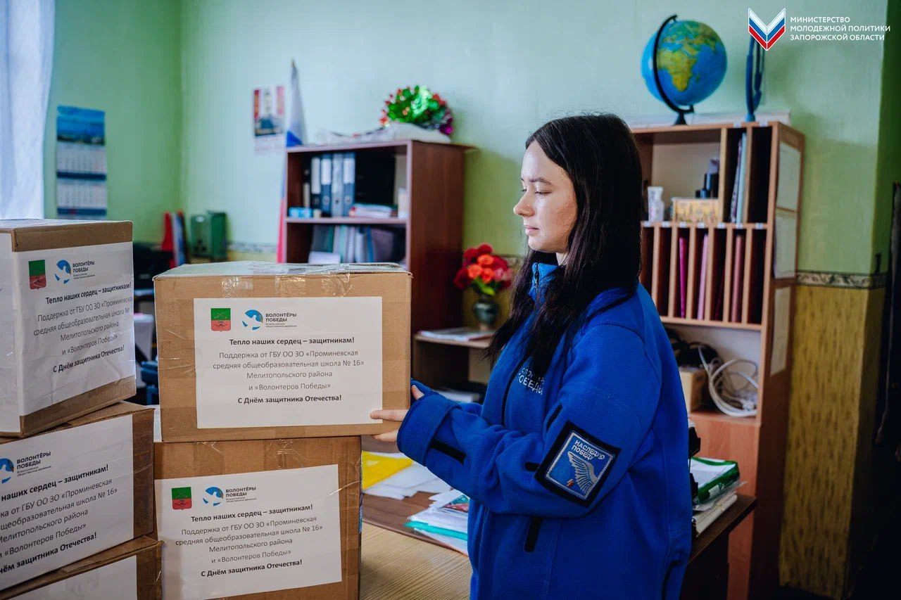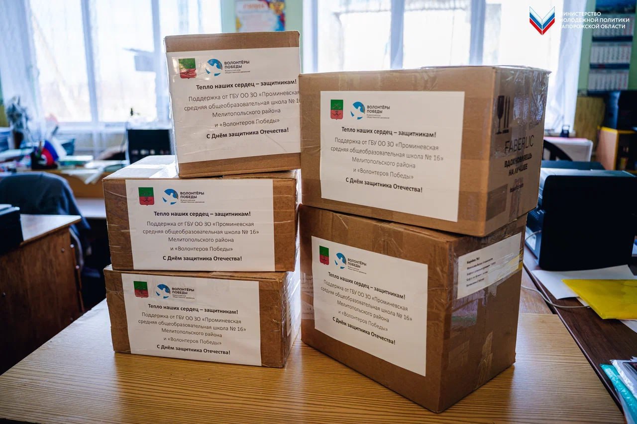 В преддверии Дня защитника Отечества активисты движения «Волонтёры Победы» закрыли сбор гуманитарной помощи для бойцов специальной военной операции в школах Запорожской области. Добровольцы посетили Новобогдановскую школу № 49, Веселовскую школу № 44 и Проминевскую школу № 16.